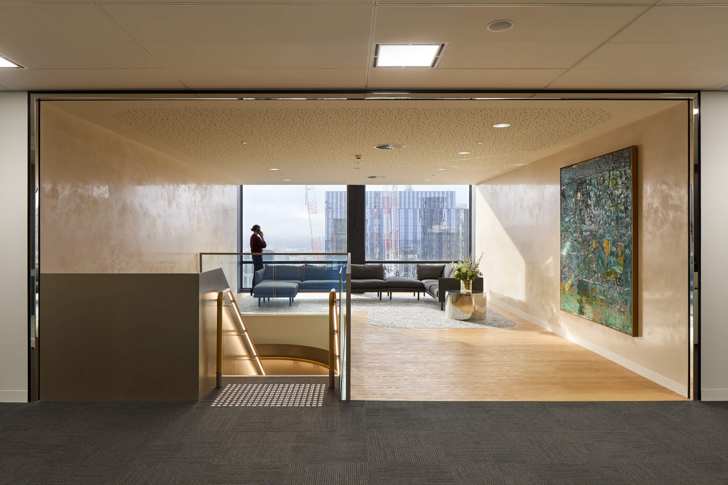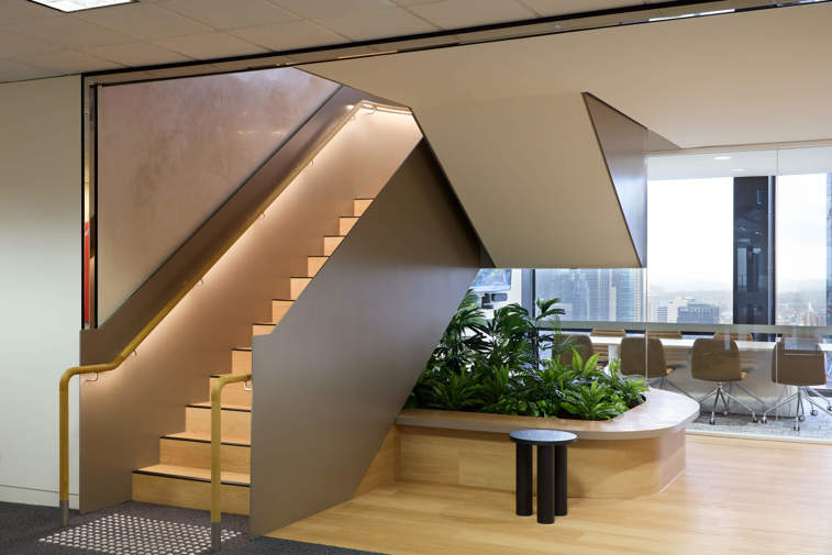 Delivering this feature required navigating significant technical challenges. The heritage-listed building presented structural limitations, penetration size restrictions, and extensive service adjustments to accommodate the stairwell. Through careful coordination and design, these complexities were resolved, ensuring the staircase performed as both a practical link and a symbol of connection.