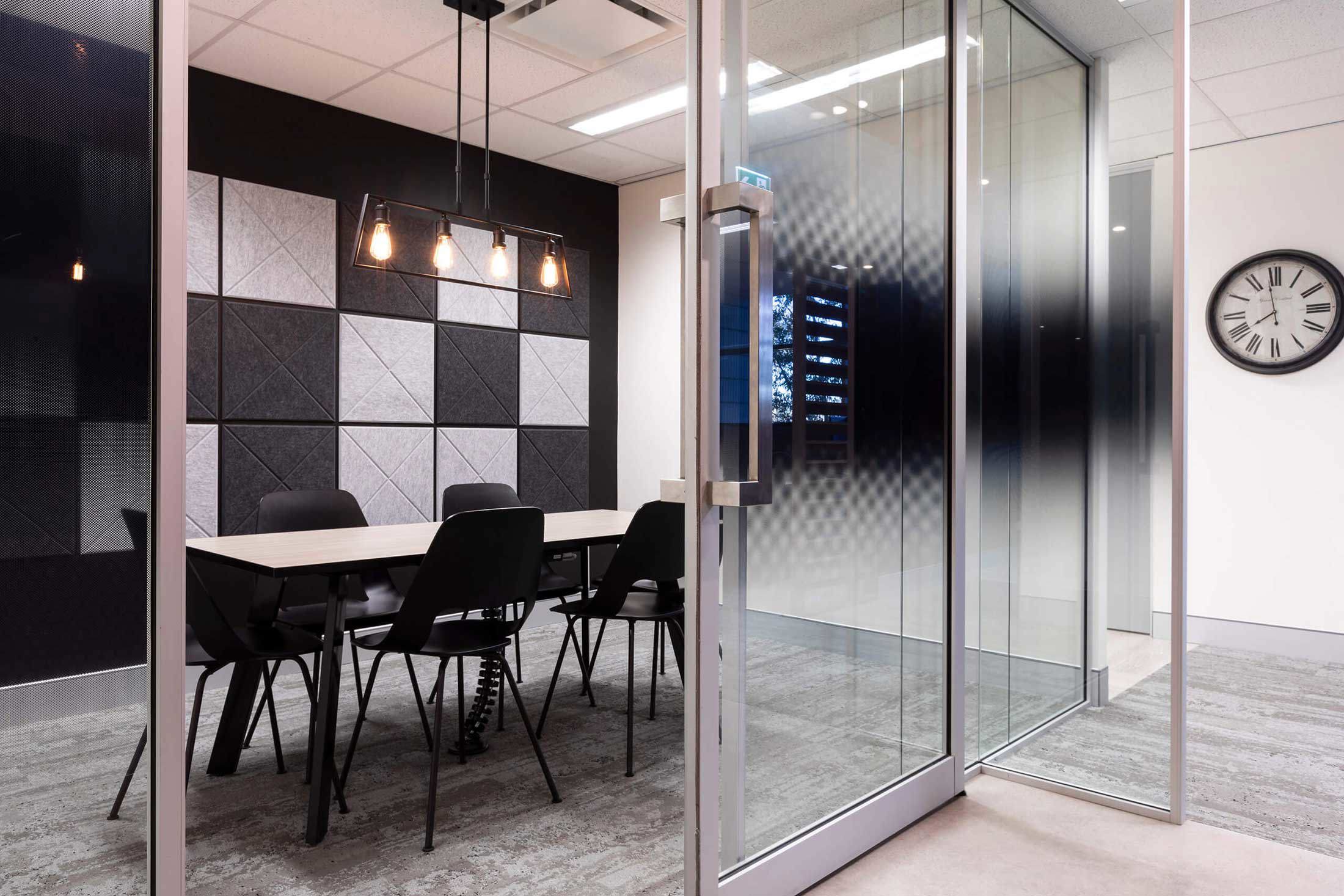 The internal space was reconfigured to accommodate new meeting rooms, which were lacking in the old layout. We introduced acoustic materials throughout to manage noise levels in open spaces.